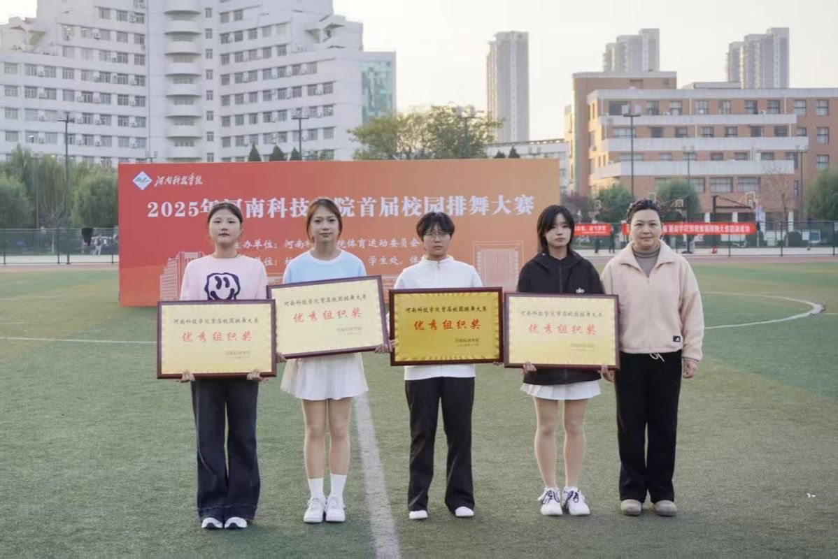 11月15日,2025年河南科技学院首届校园排舞大赛在西操场落幕。我院代表队以充满青春活力的表演赢得全场的喝彩,在比赛中获得三等奖和优秀组织奖的佳绩,展现了当代大学生的精神风貌。
