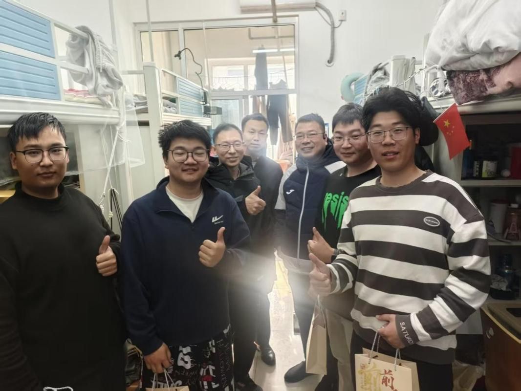 学院领导详细询问学生复习进度、身心状态及当前困难,鼓励大家坚定信心、科学规划、调整心态,并亲手为学生送上“考研加油包”,体现了学院对学子的深切关怀和美好祝福。