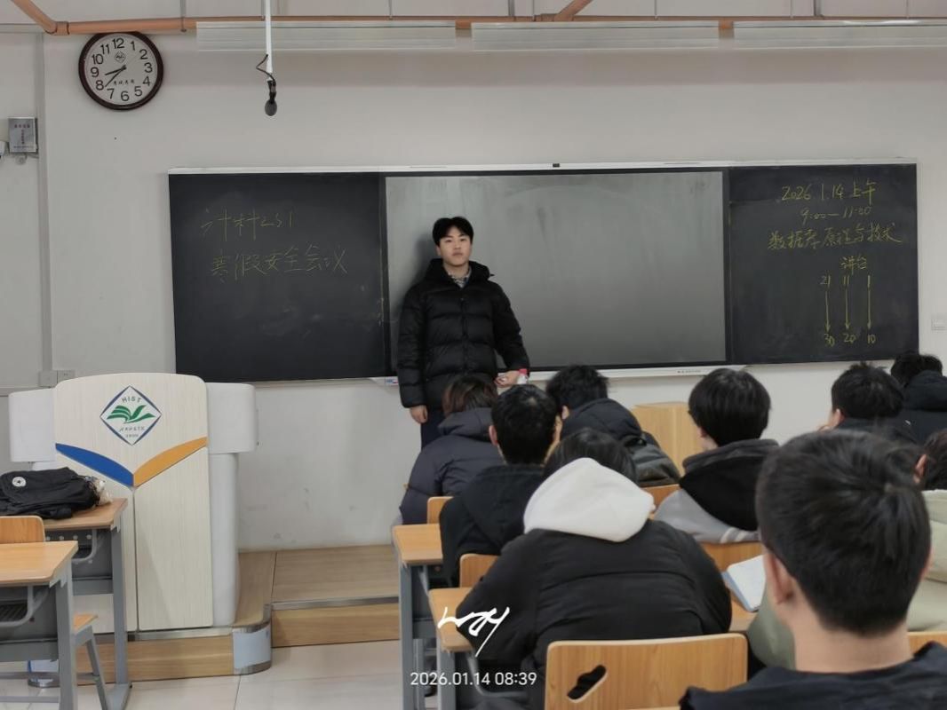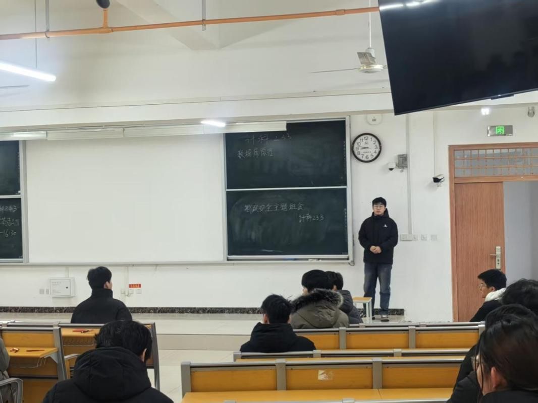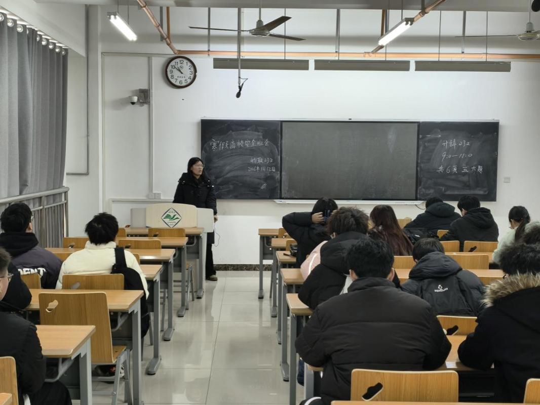 各班级班长传达了学院学生干部会议暨寒假安全教育培训内容,围绕寒假离校信息报备、宿舍和电动车安全规范、假期风险防范、学业规划等核心内容展开讲解。从宿舍断电锁门、返乡交通出行,到防范电信诈骗、参与寒假社会实践,谨防寒假工安全风险等多维度为同学们梳理寒假注意事项,让安全意识与成长规划融入假期生活。