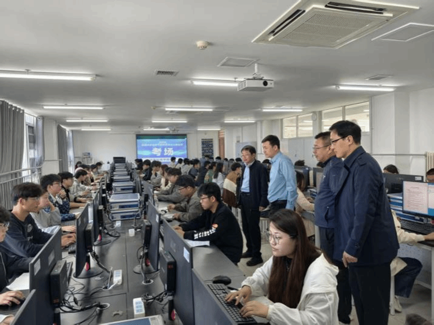 我校已经连续十二年承办该项赛事。本次大赛由教务处主办、计算机科学与技术学院承办。教务处处长杨宾峰、副处长李松伟,计算机科学与技术学院院长高国红、副院长李学勇巡视了赛场。计算机科学与技术学院组织46名学生志愿者,提供考场引导、信息咨询、秩序维护和食物派发等工作,保障大赛顺利进行;后勤服务中心和网络信息化管理中心领导及工作人员全程值班,保证了电力和网络畅通。