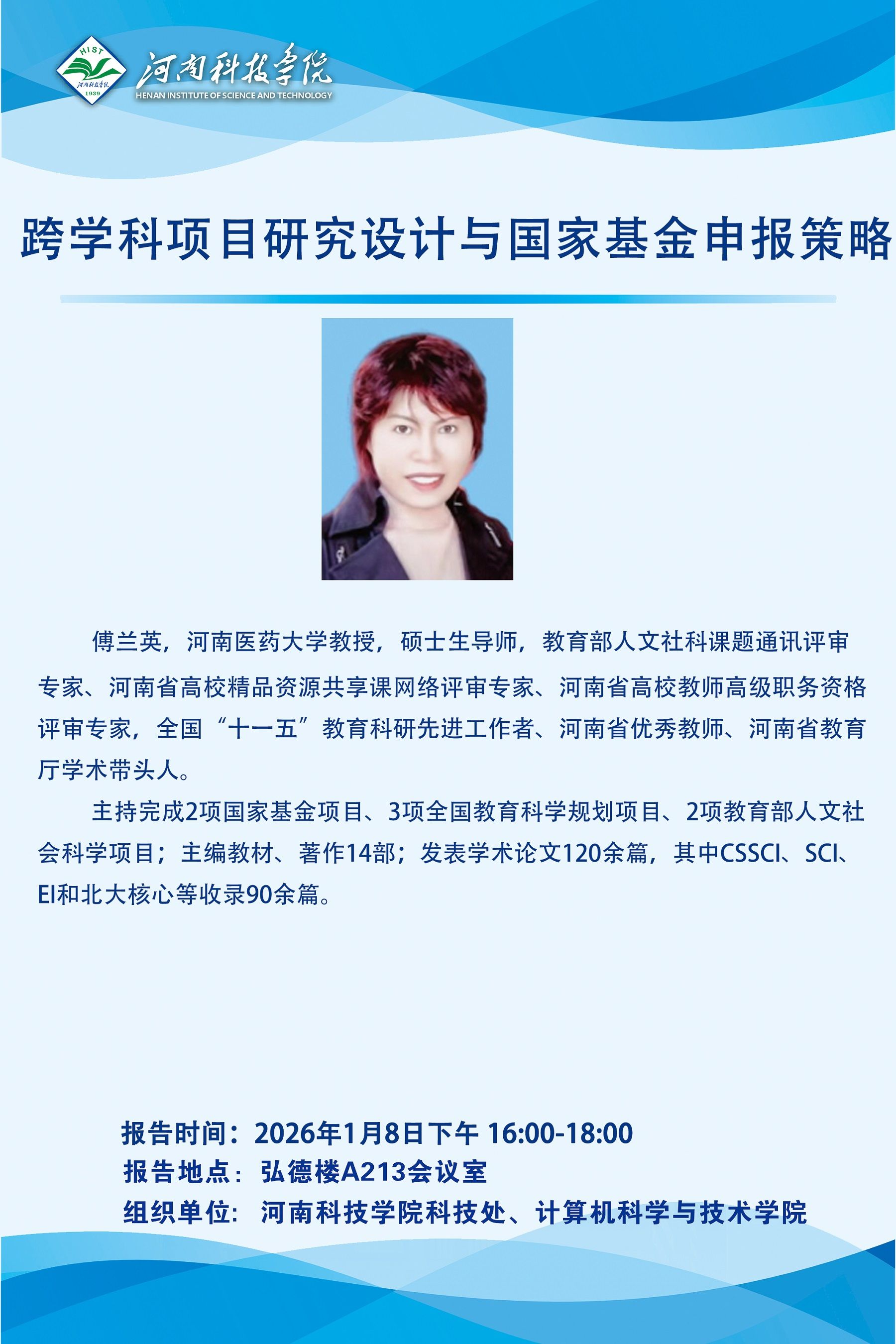 傅兰英教授:跨学科项目研究设计与国家基金申报策略